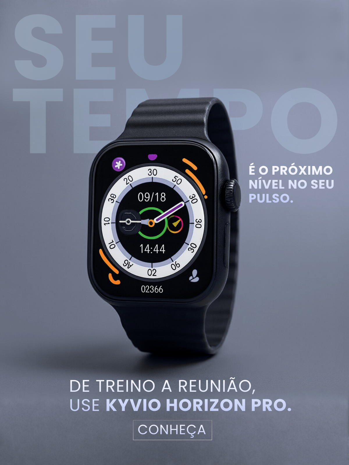 A Kyvio nasceu para simplificar a vida de quem vive em movimento. Unimos tecnologia de ponta, design inteligente e praticidade real em produtos como nossos smartwatches e bolsa de treino, sempre com um único objetivo: te dar mais liberdade no dia a dia. Acreditamos que tecnologia não é só sobre recursos, mas sobre experiência — por isso criamos dispositivos completos, fáceis de usar e com estilo, que acompanham seu ritmo no trabalho, nos treinos e nos momentos de lazer. Na Kyvio, cada detalhe é pensado para que você se conecte menos com problemas e mais com o que realmente importa.